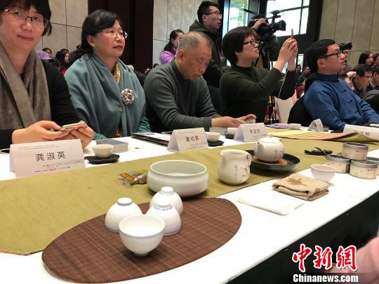 圖為小笠原流煎茶道副家元現(xiàn)場(chǎng)進(jìn)行了“比翼棚”瓢勺點(diǎn)茶法演示。 施佳秀 攝