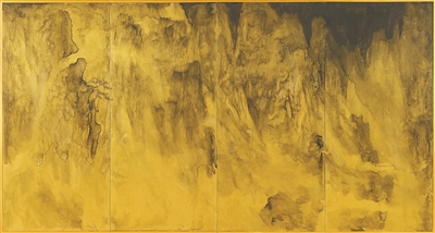 “知新”是近年系列的水墨探索,梳理丘挺的“思古求新”。其中“曠度”展廳中間還原了2010年丘挺在波士頓“與古為徒”展中《西山嵐色》與趙令穰《湖莊清夏》的呼應(yīng);以及丘挺近些年的水墨探索,尤其屏風(fēng)與音樂相關(guān)的創(chuàng)作,以視覺聽覺結(jié)合的方式呈現(xiàn)。屏風(fēng)《幽谷圖系列》創(chuàng)作是對(duì)山水具體的畫材形式的解構(gòu),既不抽象也不具象,試圖以水墨回到“恍兮,惚兮”的意象性。