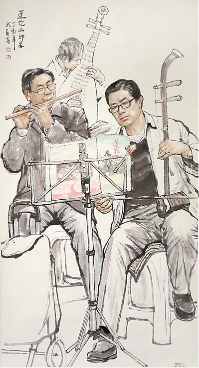 蓮花山腳下,幾位老年人聚在一起,拉二胡、吹笛等,秀出“十八般武藝”;書(shū)屋一角,一群孩子席地而坐,捧著心愛(ài)的讀物專(zhuān)心致志地看起來(lái)……此次國(guó)畫(huà)展以中國(guó)畫(huà)的形式表達(dá)了畫(huà)者對(duì)福田、對(duì)祖國(guó)的深情厚誼和對(duì)美好生活的向往熱愛(ài),也展現(xiàn)了廣大老年人在福田區(qū)生活的良好精神文化生活狀態(tài)。園嶺街道老年協(xié)會(huì)的朱女士觀展后說(shuō),畫(huà)展給轄區(qū)長(zhǎng)者搭建了充分發(fā)揮自己才藝的平臺(tái),展現(xiàn)出轄區(qū)老年人充實(shí)愉快的晚年生活;同時(shí),令老年人減輕對(duì)子女的依賴,活出獨(dú)立的生活品味。