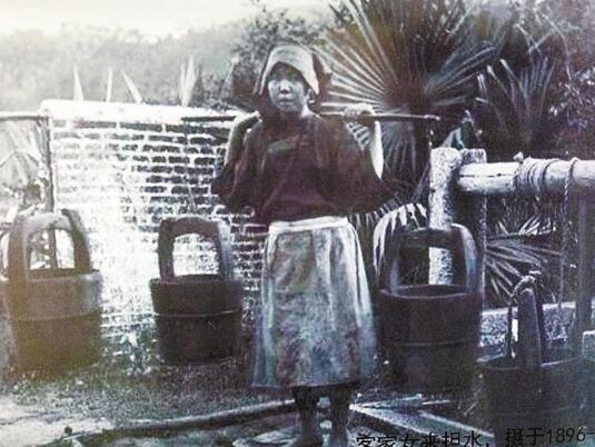 ▲客家女擔水老照片,攝于1894年。(資料圖片)