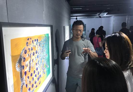 青年藝術(shù)家姜培源為觀眾講解創(chuàng)作始末