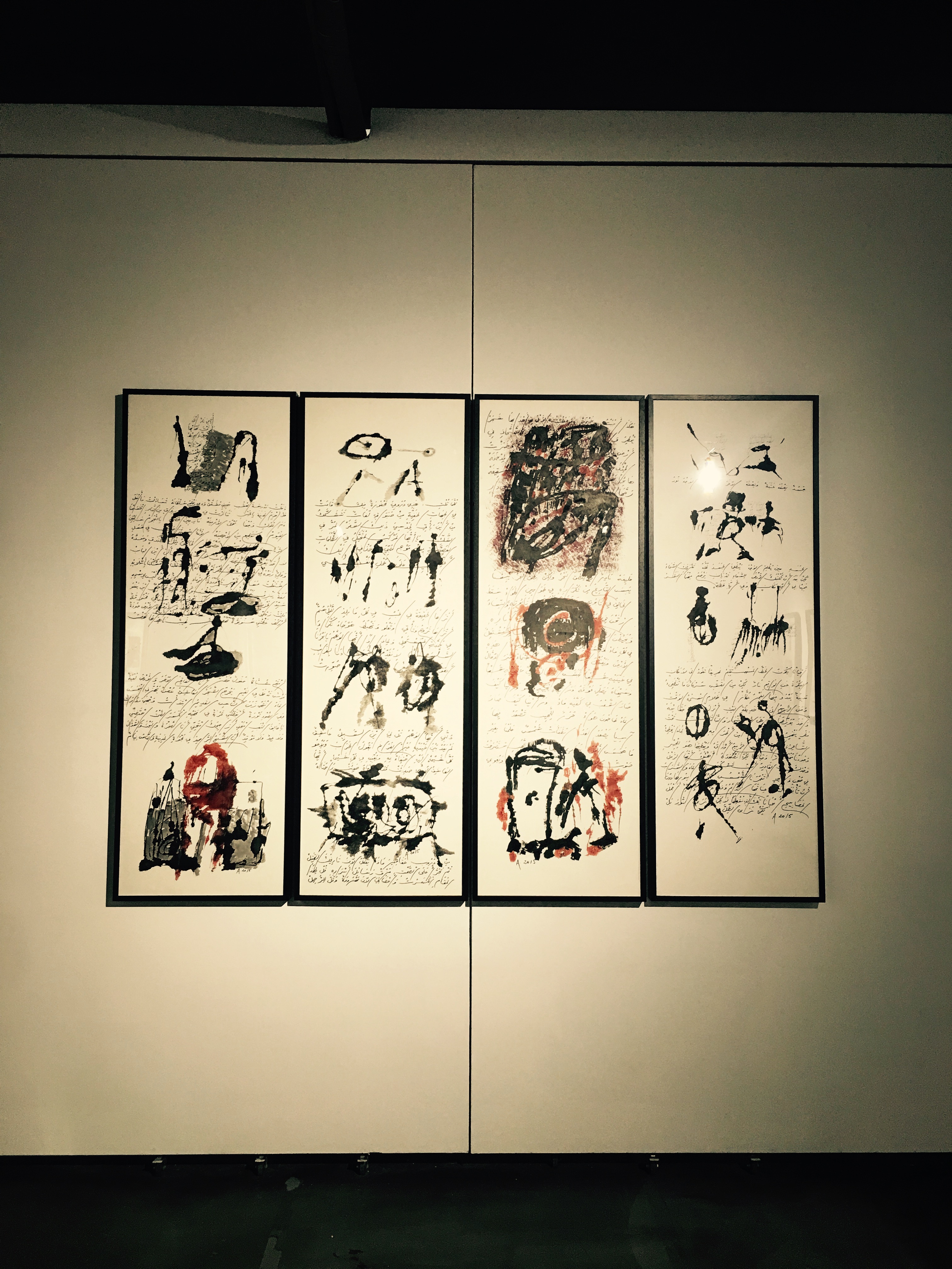 阿多尼斯的畫平靜、深邃,而又暗流涌動,光芒四射。那些騰躍于拼貼和暈染、抽象和寫意之間的效果,無論有多么率性隨機(jī)以至近乎游戲,都是那么元?dú)獬渑?,韻致飽滿,那么令人既得享酣暢淋漓的解放感,又不由自主地陷入深長的回味冥思。無論是怎樣的不拘一格,僅就色彩言,黑與紅及其不同的變奏,可以說構(gòu)成了這些作品的基調(diào)。