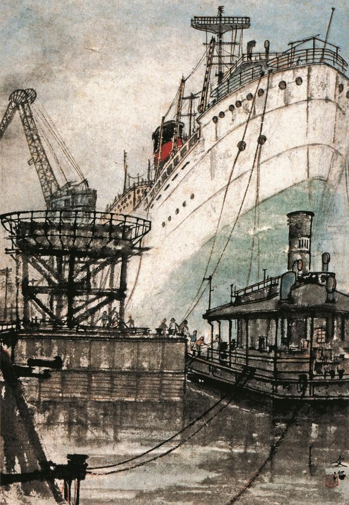 宋文治對廣東地區(qū)的關注始于20世紀的60年代。他在1960年參加江蘇國畫院組織的行程二萬三千里的寫生活動中,經(jīng)過廣州時就創(chuàng)作了《廣州造船廠》,罕見地運用山水畫技法表現(xiàn)現(xiàn)代工業(yè)題材。