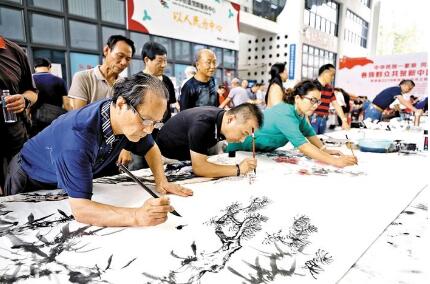 寶安日報2019年9月19日訊 9月18日下午,以“中華民族一家親,同心共筑中國夢——各族群眾共賀新中國成立70周年”為主題的書畫藝術筆會在龍華文化藝術中心舉行,80多位書畫名家現(xiàn)場揮毫,盡展中華民族文化藝術瑰寶魅力。