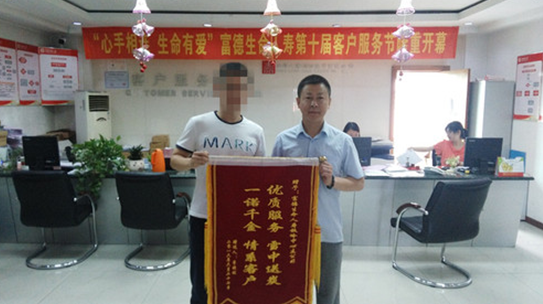 6月27日富德生命人壽鐵嶺中支迎來(lái)了一位特殊的客人,李先生的愛(ài)人雙手捧著“優(yōu)質(zhì)服務(wù)、雪中送炭,一諾千金、情系客戶” 的錦旗,非常激動(dòng)的說(shuō):“多虧有富德生命保險(xiǎn),使我們本來(lái)不富裕的家庭,在有難的時(shí)候,讓我們的生活有了保障,讓我愛(ài)人的后續(xù)治療有了保障,還是保險(xiǎn)好?!?/p>