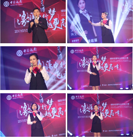 在第一輪的“服務(wù)之星”項目角逐中,來自羅湖、南山、福永、東門、蛇口、龍華、布吉、龍崗等各區(qū)域支行的12位理財經(jīng)理通過聲情并茂的演講,從自身成長、客戶案例分享、服務(wù)心得等各方面展現(xiàn)其服務(wù)水準(zhǔn)。