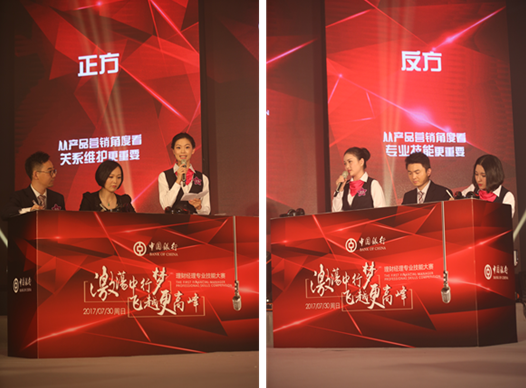 在辯論環(huán)節(jié),選手們采取3:3對抗辯論形式,圍繞著 “美元加息,現(xiàn)階段配置美元資產(chǎn)是否合理?”、“在服務(wù)客戶時,關(guān)系維護(hù)和專業(yè)技能,哪個更重要?”兩大辯題進(jìn)行辯論,現(xiàn)場金句頻現(xiàn),精彩紛呈。此環(huán)節(jié)設(shè)計,不僅考驗理財經(jīng)理們的個人專業(yè)技能水平,還考驗團(tuán)隊臨場發(fā)揮能力。