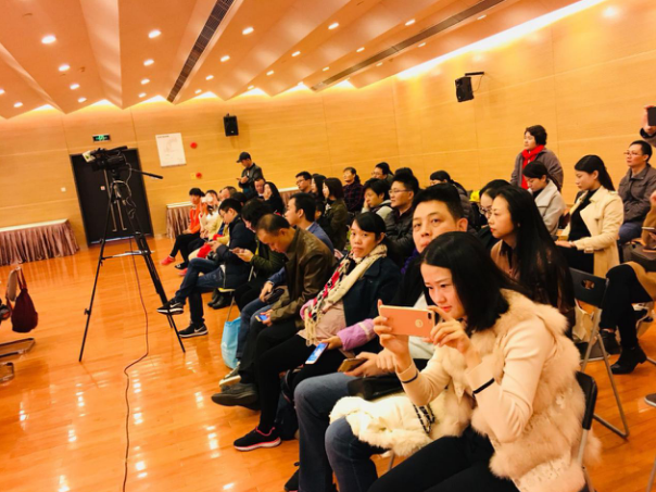 在復(fù)賽現(xiàn)場觀戰(zhàn)的家長們