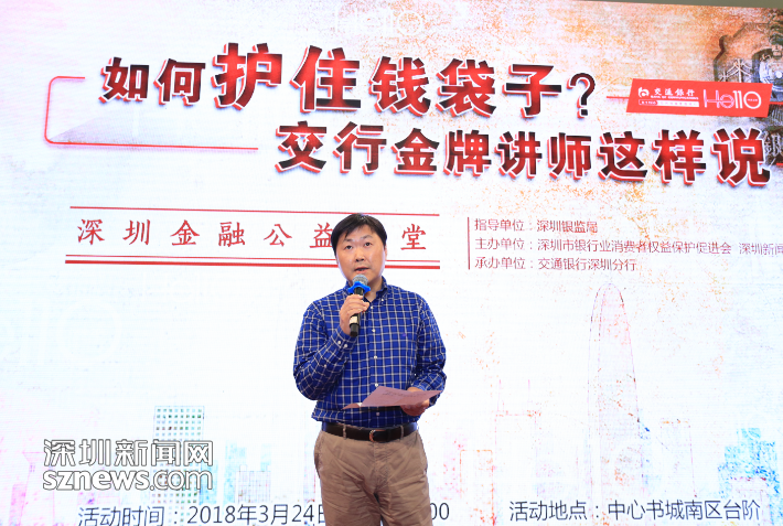 3月24日,在深圳中心書城南臺階,由深圳銀監(jiān)局指導(dǎo),深圳新聞網(wǎng)、深圳市銀行業(yè)消費者權(quán)益保護促進會主辦,交通銀行深圳分行承辦的大型系列公益活動“深圳金融公益講堂”第四講如期開講?;顒友埩藖碜越煌ㄣy行深圳分行的三位金牌講師從專業(yè)角度為市民朋友們詳細(xì)講解理財知識,現(xiàn)場解答市民的金融消費困惑。