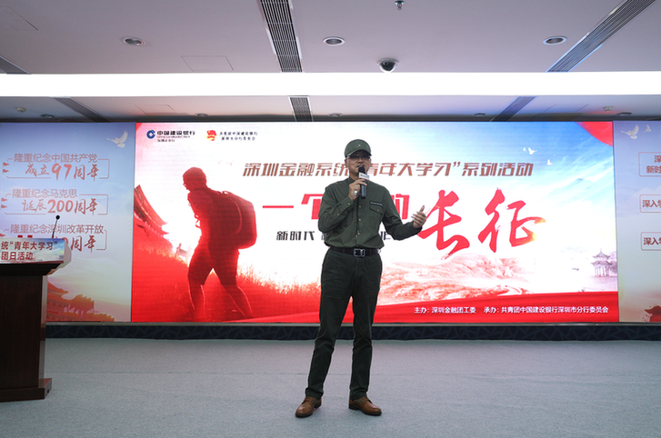7月13日上午,由深圳金融團(tuán)工委主辦、建設(shè)銀行深圳市分行團(tuán)委承辦的深圳金融系統(tǒng)“青年大學(xué)習(xí)”主題團(tuán)日活動(dòng)在建設(shè)銀行會(huì)議室隆重召開。活動(dòng)邀請著名攝影家、紀(jì)錄片導(dǎo)演左力老師為大家分享“一個(gè)人的長征”主題講座。深圳金融團(tuán)工委劉鵬書記出席活動(dòng)并致辭,50余家機(jī)構(gòu)共150多名深圳金融青年參加了這次活動(dòng)。