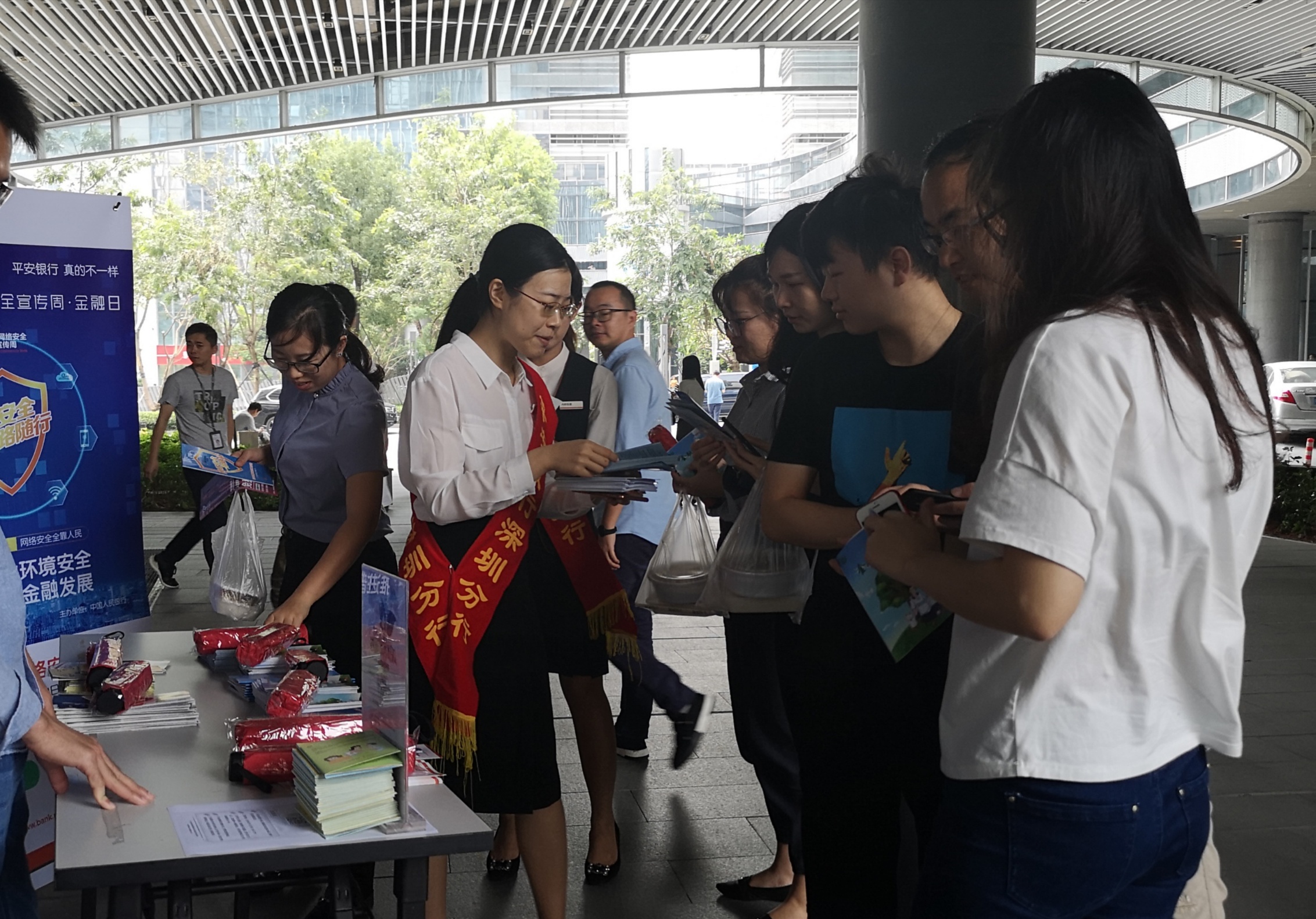 針對非法集資案件頻發(fā)的情況,9月19日中午,平安銀行深圳分行組織大沖支行在人群密集區(qū)域設點宣傳,工作人員以發(fā)放宣傳折頁、擺放橫幅、張貼海報等形式向公眾普及各類正規(guī)投資渠道等投資理財知識,引導公眾合理選擇金融產(chǎn)品和服務,提升防范非法金融活動的能力,呼吁公眾遠離非法集資、非法放貸、金融詐騙。此外,該行工作人員還運用生動的案例向公眾宣講了防范電信詐騙的技巧,提高公眾防騙意識。