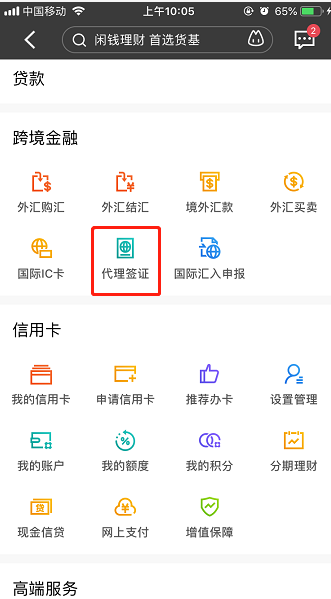 用戶(hù)只需登錄招商銀行手機(jī)APP,在首頁(yè)點(diǎn)擊“全部”,找到“跨境金融”板塊下屬的“代理簽證”,選擇所在城市即可快速便利相應(yīng)服務(wù)。