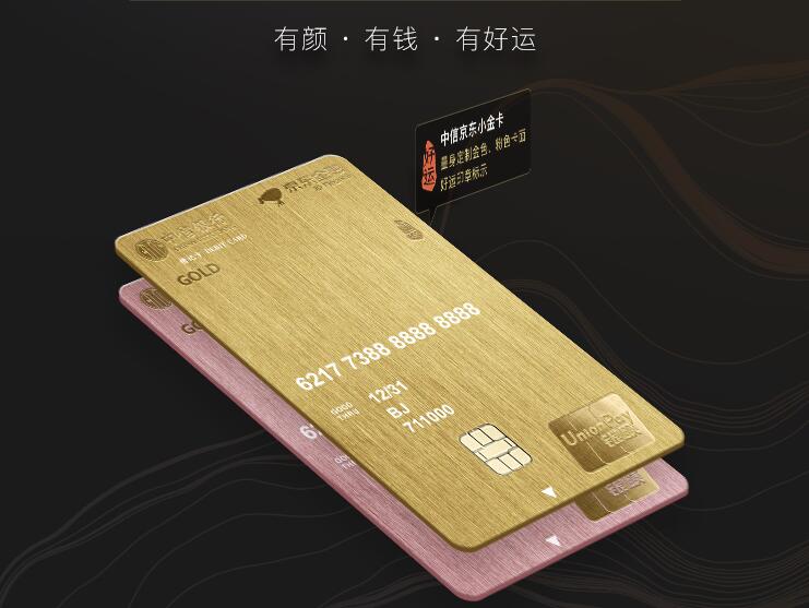 中信銀行京東小金卡按照中信銀行貴賓客戶身份的規(guī)格定制和設(shè)計,顏色分金色和玫瑰金兩種,卡面為符合時尚潮流的豎版設(shè)計,簡約大方、典雅別致,卡面右上方還有一個靈動的中國印,內(nèi)嵌“好運”二字。