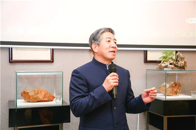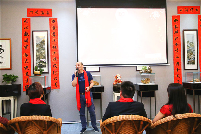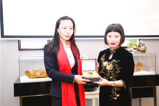 自古書法印章不分家,作品必須蓋印才算完整。本次活動(dòng)場地提供田黃博物館、希雍天石董事長繆建生為到場嘉賓和校友,受邀分享田黃石科普知識(shí),介紹歷經(jīng)1.8億萬年形成的田黃石種類及特點(diǎn)。 歡聚活動(dòng)上,田黃博物館特別挑選了一枚“溫、潤、細(xì)、膩、凝、潔” 、印面方正碩大,雙龍雕刻立體,栩栩如生的昌化田黃貫斗雙龍印璽,捐贈(zèng)給文學(xué)社。 收到如此珍貴的禮物,求是文學(xué)社秘書長樓蓉表示:非常感謝田黃博物館的支持與厚禮,后期將委托機(jī)構(gòu)對這塊印石義拍或義賣,所得將以求是文學(xué)社和田黃博物館名義,捐贈(zèng)給公益項(xiàng)目,會(huì)讓這一珍貴的禮物,發(fā)揮更多的社會(huì)價(jià)值。