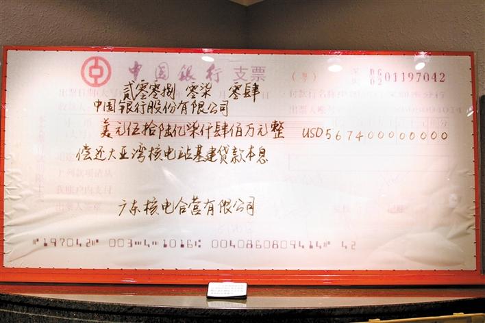 大亞灣核電站基建外匯貸款還款支票。