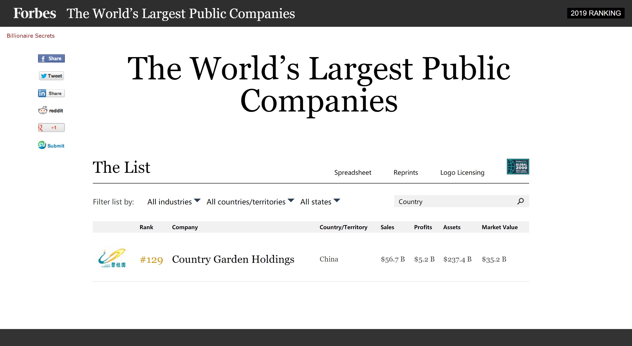 5月16日晚,權威商業(yè)雜志 《福布斯》發(fā)布了2019年全球上市公司2000強榜單。其中,中國龍頭房企碧桂園(02007.HK)已連續(xù)10年上榜,且排名逐年上升,最新排名升至第129位。