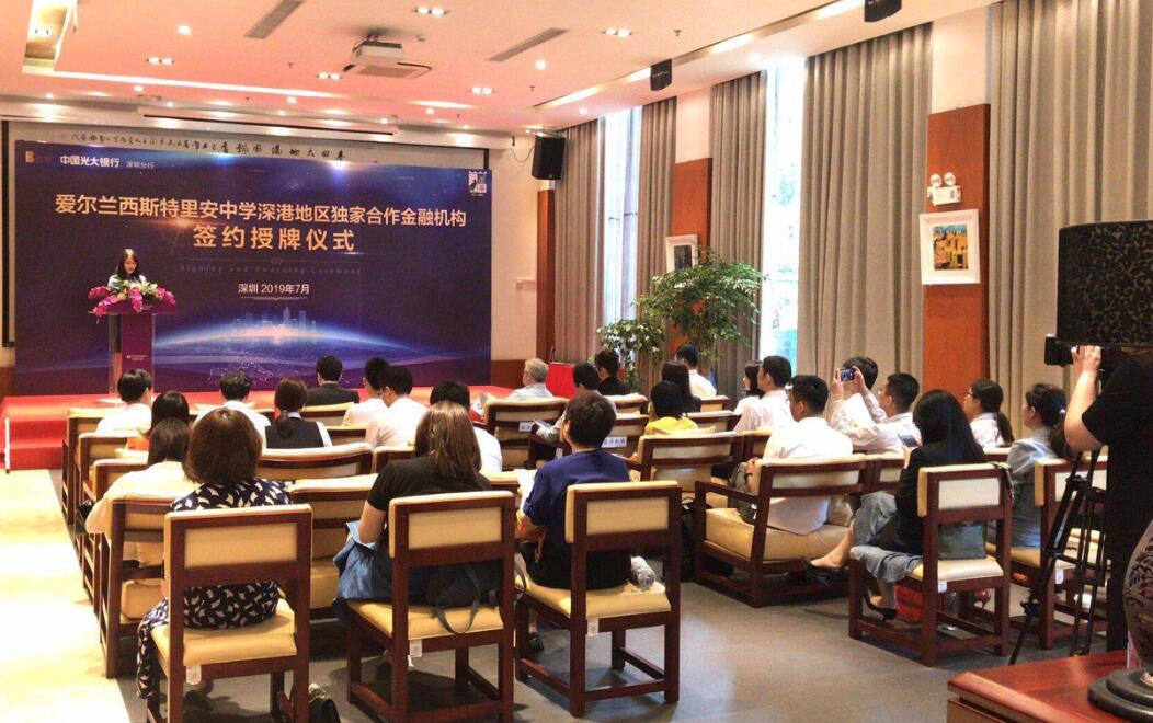 中國光大銀行深圳分行與愛爾蘭頂級(jí)私立男校簽署獨(dú)家合作授牌儀式現(xiàn)場