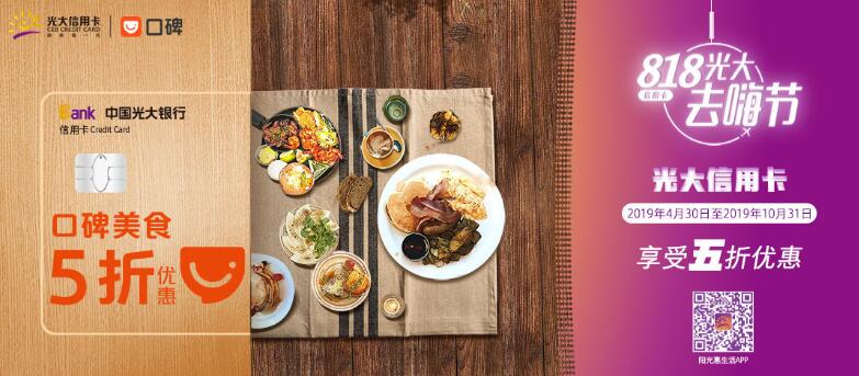 活動(dòng)三:2019年6月1日-2019年8月31日,每周五、周六、周日10:00至24:00點(diǎn)整活動(dòng)期間支付寶實(shí)名認(rèn)證個(gè)人用戶在口碑指定商圈,用戶使用支付寶賬戶綁定光大銀行信用卡,通過口碑手機(jī)客戶端或支付寶-口碑頁面購(gòu)買線上商圈通用券,或進(jìn)行當(dāng)面付支付消費(fèi),可有機(jī)會(huì)享受5折優(yōu)惠,最高封頂優(yōu)惠50元,活動(dòng)期間每天限20000個(gè)優(yōu)惠名額,用完即止?;顒?dòng)期間同一用戶每天限享1次優(yōu)惠,同一用戶每月最多可享受2次優(yōu)惠。
