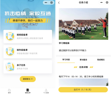 為此,“學(xué)子通”上線了“在家上學(xué)”功能,老師們可根據(jù)實(shí)際需要,選擇“按班級(jí)備課”或“按年級(jí)備課”,針對(duì)班級(jí)或年級(jí)將錄制好的備課內(nèi)容,如防疫小知識(shí)、親子閱讀、親子游戲等內(nèi)容上傳到“在家上學(xué)”模塊,讓孩子“宅”在家中也不停止學(xué)習(xí)的腳步。此外,老師還可通過(guò)設(shè)置親子小任務(wù),如一起做青蛙操、讀讀繪本小故事和親子手工藝等,讓家長(zhǎng)和學(xué)生一起參與,并可設(shè)置打卡,調(diào)動(dòng)起學(xué)生的學(xué)習(xí)興趣,既增加親子感情,又讓學(xué)生開(kāi)展室內(nèi)鍛煉活動(dòng)、開(kāi)展課外閱讀,保持良好的身體狀態(tài),讓宅在家中的假期生活變得豐富。