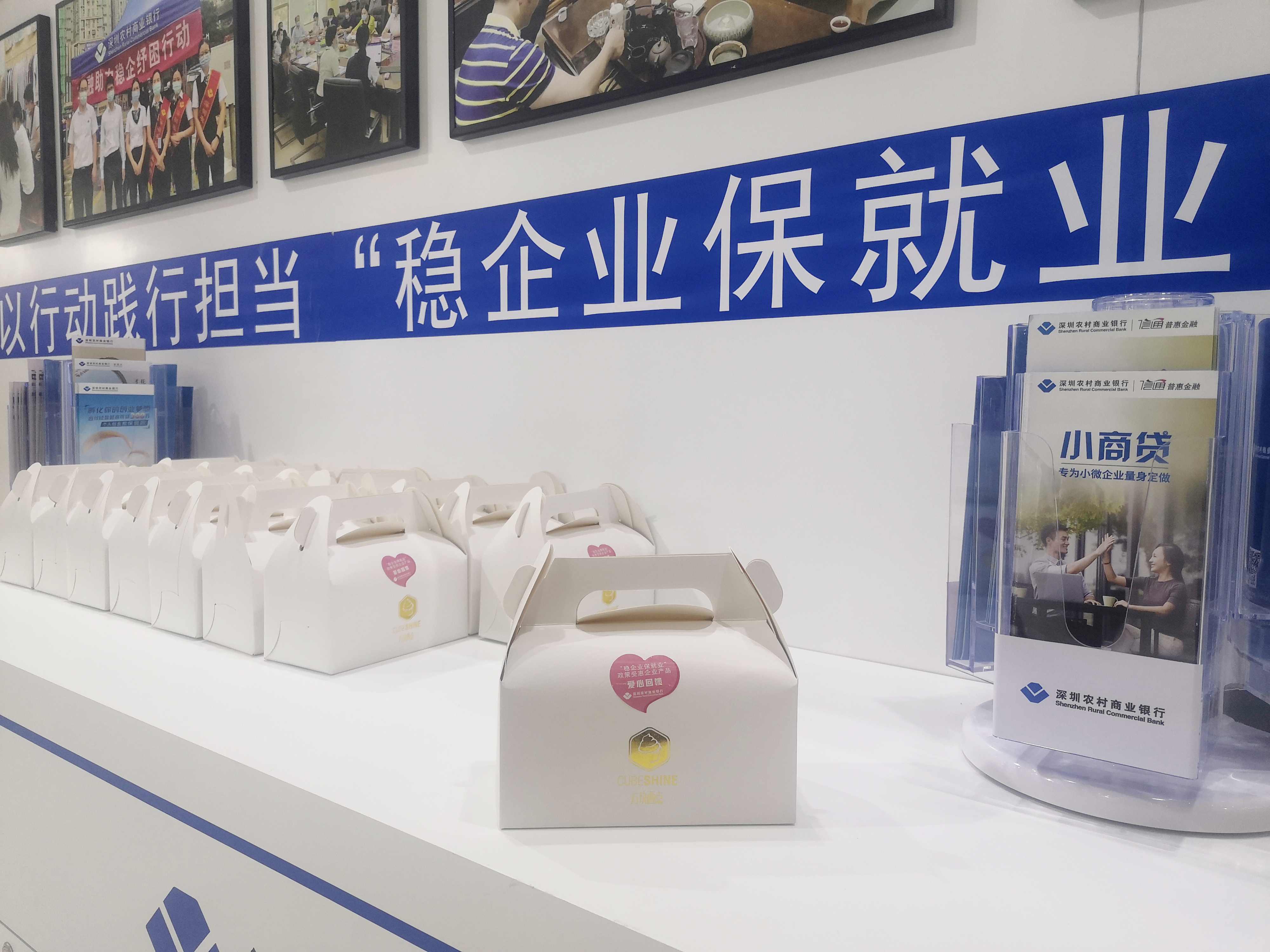值得一提的是,該行還邀請了2家“穩(wěn)企業(yè)保就業(yè)”政策受惠企業(yè)來到展會現(xiàn)場,展示其在金融支持下復(fù)工復(fù)工后的最新產(chǎn)品,以及舉辦回饋客戶的愛心活動。在展會現(xiàn)場可以看到,來自易普森生物科技(深圳)有限公司醫(yī)院物流機器人和醫(yī)院消毒機器人在展會現(xiàn)場來回穿梭,金博會參觀者在有序排隊領(lǐng)取深圳農(nóng)商行派發(fā)的方塊西點面包店的點心。據(jù)了解,這兩家企業(yè)都是在疫情發(fā)生后,深圳農(nóng)商行通過深入社區(qū)和下沉街道主動上門摸排客戶需求時,了解到客戶面臨資金周轉(zhuǎn)問題后,開通綠色通道,快速審批發(fā)放了信用貸款,及時為客戶解決了資金難題,此次在展會現(xiàn)場展出的也是該2家公司最新研發(fā)的成果和熱銷產(chǎn)品。