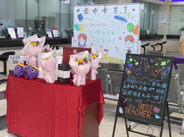 深圳新聞網(wǎng)2021年9月10日訊 (記者 朱琳 通訊員 樓蓉 沈婷)金秋九月,秋高氣爽,為迎接第37個(gè)教師節(jié),深圳分行開展“感恩教師節(jié)”系列活動(dòng),部分網(wǎng)點(diǎn)通過教師節(jié)專屬活動(dòng),為廣大教師客戶送上了節(jié)日的鮮花。9月10日,在深圳分行營業(yè)部辦理業(yè)務(wù)的人民教師均可獲贈(zèng)精美禮品一份。
