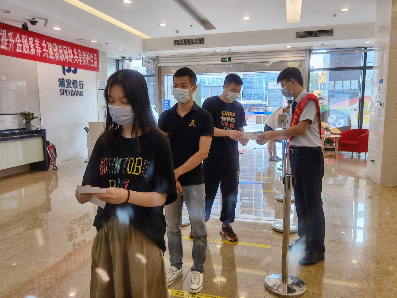 恰逢“金融知識普及月”,浦發(fā)銀行工作人員借助兌換活動契機(jī),向市民朋友普及人民幣相關(guān)知識,號召大家愛護(hù)人民幣,自覺抵制破壞人民幣的行為,維護(hù)人民幣的法定地位。