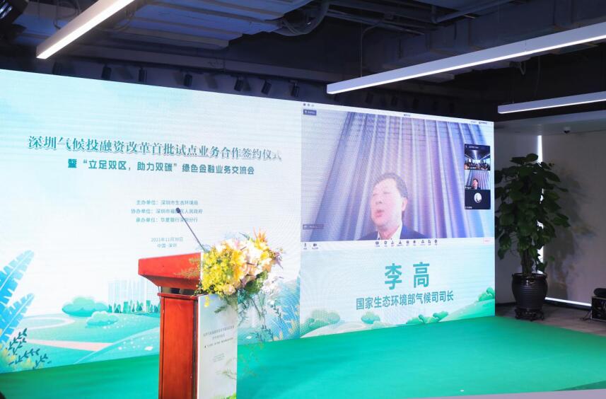 國家生態(tài)環(huán)境部氣候司司長李高,深圳市政府副秘書長劉昂,深圳市生態(tài)環(huán)境局局長李水生,深圳市委改革辦副主任孫華明,福田區(qū)政府副區(qū)長朱江,華夏銀行總行黨委委員、營銷總監(jiān)、深圳分行黨委書記、行長陳傳龍等領(lǐng)導(dǎo)出席。深圳市政府、深圳市生態(tài)環(huán)境局、市委改革辦、中國人民銀行深圳市中心支行、福田區(qū)政府相關(guān)負責人、深圳市綠色企業(yè)代表、深圳市綠色相關(guān)行業(yè)協(xié)會代表、華夏銀行深圳分行相關(guān)單位代表等70余人參加活動。