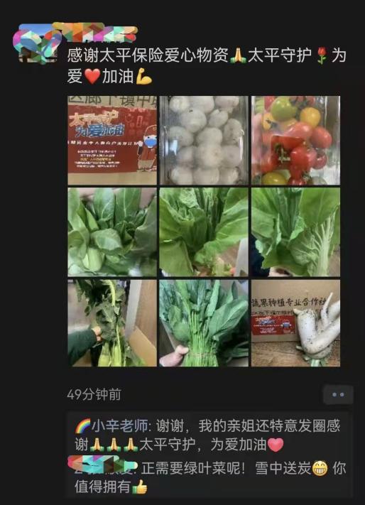 太平人壽代理人,紛紛化身太平守“滬”者,為疫情封控中的廣大客戶雪中送炭,切實(shí)解決了搶菜難的問題。據(jù)悉,活動(dòng)推出至今,已有上百位客戶收到了“太平守護(hù)者”送上的暖心慰問,越來越多的客戶感受到了太平的溫暖。