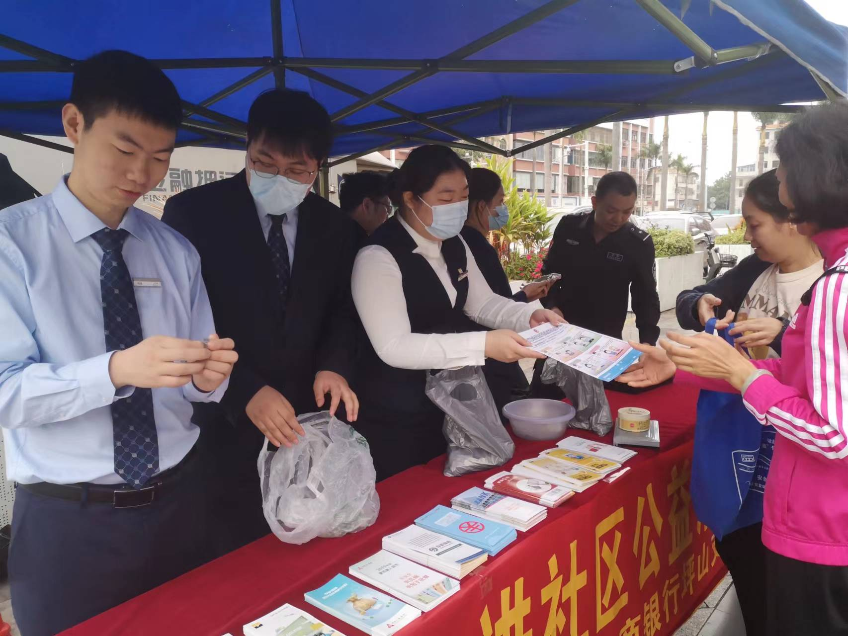 開展硬幣大篷車兌換活動(dòng),活躍社區(qū)零鈔交互,滿足社區(qū)居民的硬幣需求。2023年,深圳農(nóng)商銀行聯(lián)合威豹押運(yùn)公司開展17次硬幣大篷車兌換活動(dòng),回收硬幣約70萬元,同時(shí)向有需要零散鈔的超市、商戶、市民提供成卷的硬幣兌換。在兌換活動(dòng)現(xiàn)場,同時(shí)宣傳反假貨幣、不得拒收現(xiàn)金等內(nèi)容,營造良好的人民幣支付流通環(huán)境。