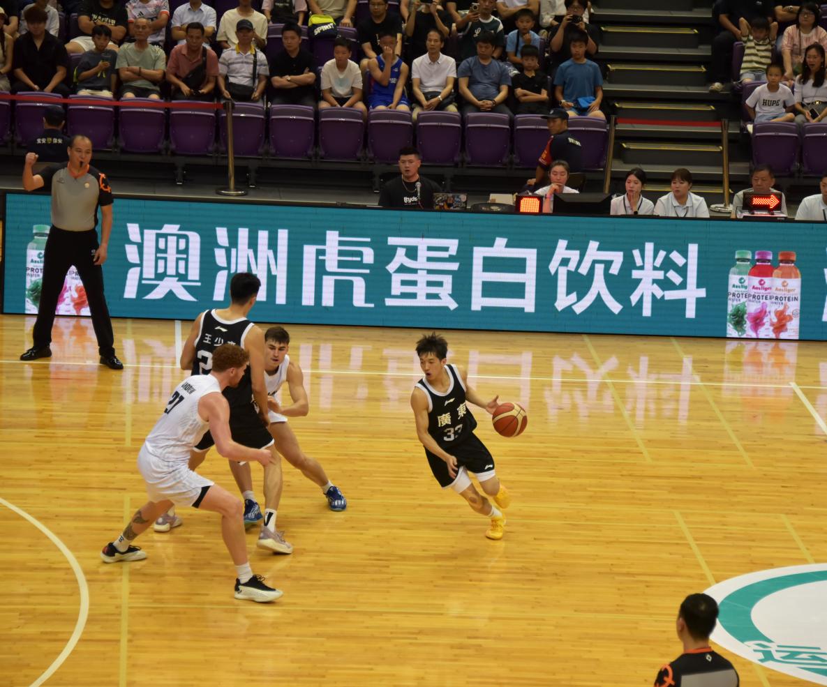 在爭(zhēng)冠大戰(zhàn)中,廣東全運(yùn)男籃開局先聲奪人,借助火熱的手感,用外線三分建立了領(lǐng)先優(yōu)勢(shì),直至第三節(jié),廣東全運(yùn)男籃一直保持領(lǐng)先。但第四節(jié)新西蘭男籃逐漸掌控了場(chǎng)上主動(dòng),并在節(jié)中實(shí)現(xiàn)反超,盡管兩名國(guó)手杜潤(rùn)旺、王浩然不斷追分,但面對(duì)新西蘭男籃高強(qiáng)度的防守,最終廣東全運(yùn)男籃還是以77-82憾負(fù)新西蘭男籃,但全隊(duì)在深圳球迷面前展現(xiàn)出了頑強(qiáng)的拼搏精神贏得了全場(chǎng)球迷熱烈的掌聲。本場(chǎng)比賽,來自深圳男籃的王浩然拿到了全隊(duì)最高的19分,杜潤(rùn)旺砍下了15分,小將張文逸則貢獻(xiàn)了17分。通過與幾支高水平球隊(duì)的較量,剛集結(jié)不久的廣東全運(yùn)男籃逐漸找到狀態(tài),為備戰(zhàn)今年全運(yùn)會(huì)、沖擊男籃項(xiàng)目金牌打下了堅(jiān)實(shí)的基礎(chǔ)。