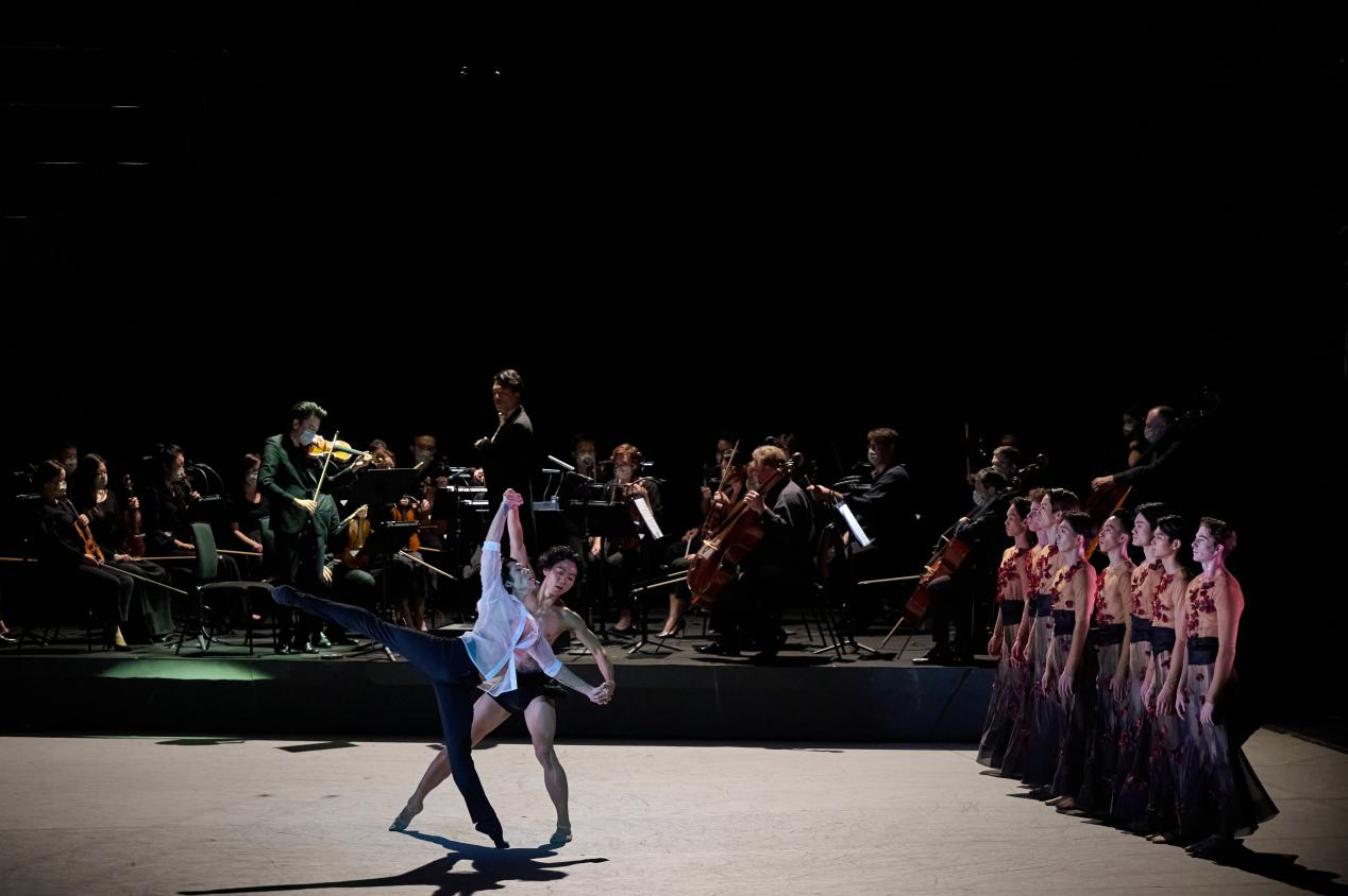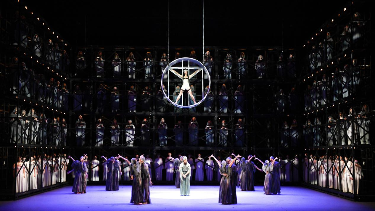 《布蘭詩歌》演出包含《布蘭詩歌》與《最后的歌》,由香港芭蕾舞團(tuán)和香港管弦樂團(tuán)聯(lián)袂呈獻(xiàn)。作品皆取材經(jīng)典藝術(shù)IP,環(huán)繞舞臺(tái)的九米高臺(tái)營造出修道院內(nèi)景,過百位歌唱家現(xiàn)場演唱,場面震撼。