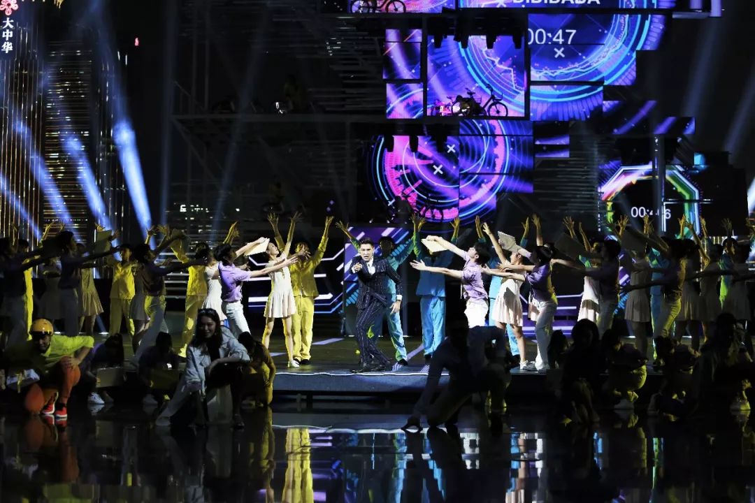 在本場(chǎng)晚會(huì)上,為了響應(yīng)“追夢(mèng)”主題,李盾聯(lián)合百 老匯頂級(jí)音樂(lè)劇導(dǎo)演卓依·馬可尼利、國(guó)際著名作曲家阿鯤,著名作詞家梁芒為晚會(huì)創(chuàng)作了一段音樂(lè)劇形式的節(jié)目《嘀嘀嗒嗒》。作為節(jié)目的重心,主創(chuàng)團(tuán)隊(duì)在劇中融入了原創(chuàng)音樂(lè)劇《深南大道》的主題曲《新的一天》選段。內(nèi)容以深圳每一個(gè)上班族的工作和生活作為出發(fā)點(diǎn),以音樂(lè)劇的形式設(shè)計(jì)了如秘書、創(chuàng)業(yè)者、設(shè)計(jì)師、程序員、義工和銷售等等不同的角色,年輕的演員、動(dòng)聽的旋律、跌宕的劇情、新穎的節(jié)奏,點(diǎn)燃了現(xiàn)場(chǎng)觀眾的熱情。精彩的表演配合晚會(huì)場(chǎng)地絢爛激情的燈光秀,以及舞臺(tái)中心十多米高被命名為“追夢(mèng)人”的LED裝置,不時(shí)更換相應(yīng)的場(chǎng)景多媒體,整體形成如夢(mèng)幻般的光影效果。