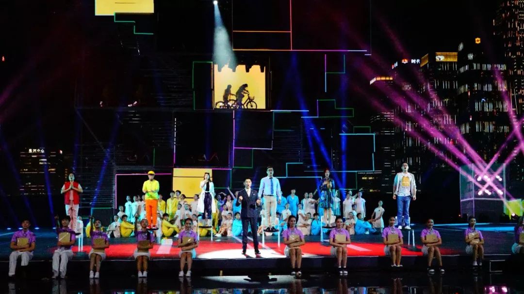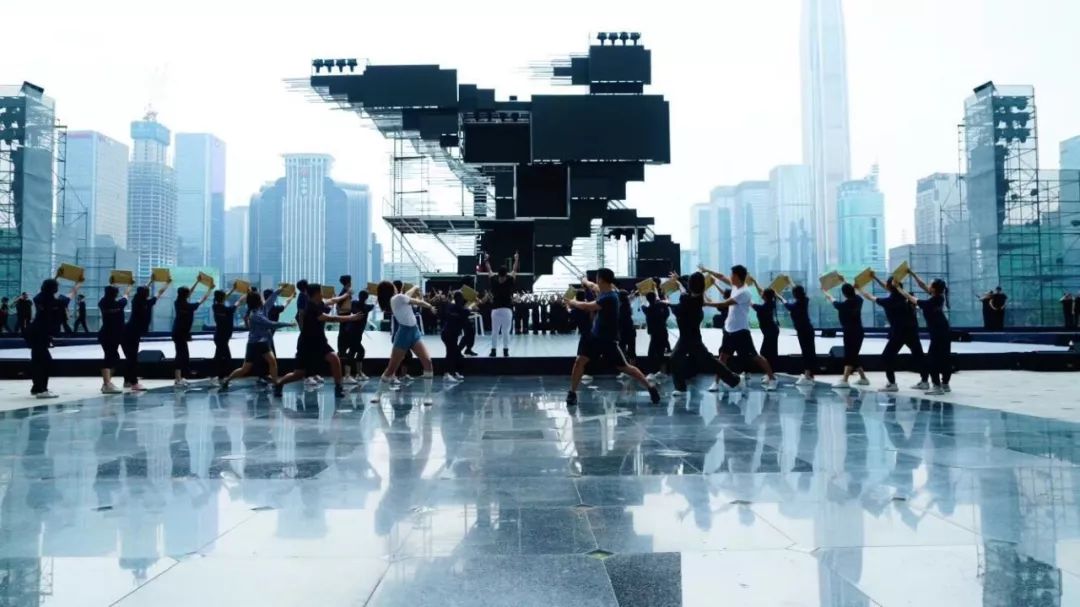 主題曲《新的一天》整首歌以小見(jiàn)大,用年輕上班族的拼搏精神體現(xiàn)深圳人共性,引領(lǐng)時(shí)代進(jìn)步潮流。“ 拒絕空想冒險(xiǎn)/誰(shuí)不渴望明天/有夢(mèng)就要實(shí)現(xiàn) ”,交織的夢(mèng)想成就了深圳。“ 新的一天就在眼前/我的命運(yùn)我要自己改變 ”,改革開放賦予了這個(gè)時(shí)代勇敢堅(jiān)持的精神。為了排演這個(gè)節(jié)目,導(dǎo)演卓依·馬可尼利和全體演員歷經(jīng)了一個(gè)月的排練,克服了演出場(chǎng)地露天的高溫,在整個(gè)節(jié)目近五分鐘的時(shí)長(zhǎng)里,展現(xiàn)了新時(shí)代青年對(duì)于工作的拼勁與堅(jiān)韌、活力和激情,彰顯了剛?cè)嵯酀?jì)、自強(qiáng)不息的深圳精神。