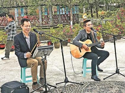 街景是一個城市最直觀的景象。富有個性的建筑,形式多樣的綠化設計,蘊含城市文化符號的公共設施,都可以成為城市街景的有效點綴。去年以來,寶安多了一道“動起來”的城市街景——街頭藝人表演。昨日,區(qū)公共文化服務中心文化專干朱韶軍和潘衛(wèi)東、鄭璇、楊鈺哲和李希文利用周末時間分別在寶安公園、海濱廣場、西灣紅樹林公園,為市民獻上吉他與架子鼓經(jīng)典曲目演唱、二胡演奏、手風琴演奏與經(jīng)典歌曲聯(lián)唱,讓在這些地方休閑、娛樂的市民感受到街頭藝術(shù)表演的魅力。