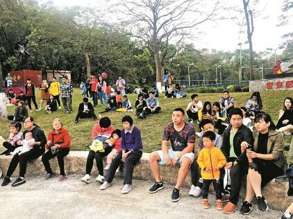 ▲市民在寶安公園觀看街頭藝術(shù)表演。