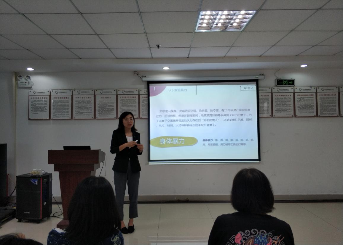 活動現(xiàn)場,維德法律服務(wù)中心志愿律師劉秀為大家講授以“要愛不要傷害”為主題的反家暴講座。她以當(dāng)下反家暴的熱點(diǎn)與經(jīng)典案例為切入點(diǎn),就如何維護(hù)女性在婚姻家庭中的權(quán)益問題與居民和社工展開深入探討。值得一提的是,劉律師還與社區(qū)工作人員一起,以親身體驗(yàn)的方式,復(fù)刻了現(xiàn)實(shí)生活中的法律咨詢現(xiàn)場。
