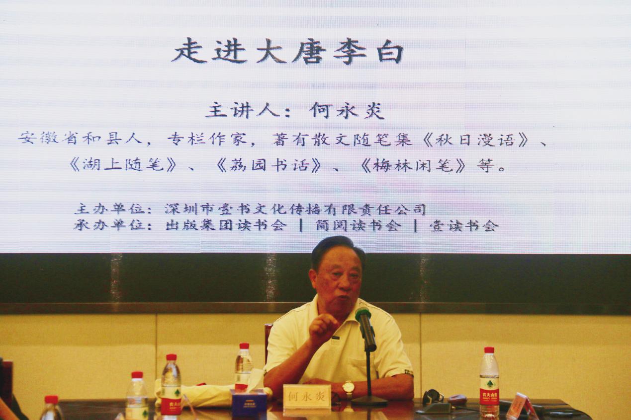 深圳新聞網(wǎng)訊 2019年8月31日下午,“福田區(qū)第三屆文學精品有聲閱讀藝術節(jié)”之“唐詩三百首”專場活動“走進大唐李白”公益文化講座暨最美唐詩朗誦會在簡閱書吧香蜜湖店三樓多功能室成功舉辦?;顒佑缮钲谑幸紩幕瘋鞑ビ邢挢熑喂尽⑸钲谑袝俏幕顿Y控股有限公司主辦,出版集團讀書會、簡閱讀書會和壹讀書會承辦,本次活動吸引了眾多對中國傳統(tǒng)文化富有興趣的詩歌愛好者,活動開始前已座無虛席,靜候這場關于李白、關于詩歌的文化盛宴。