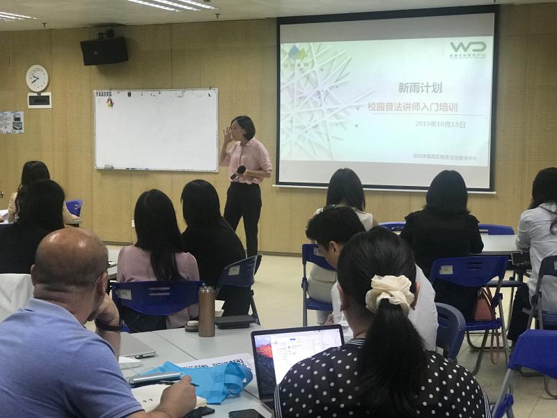據(jù)介紹,在2019年秋季學(xué)期,新雨計(jì)劃項(xiàng)目共收到福田區(qū)20個(gè)學(xué)校,181個(gè)班,362節(jié)課的普法課程授課需求,自10月14日開始,新雨計(jì)劃項(xiàng)目志愿律師已經(jīng)陸續(xù)開始進(jìn)入校園授課。為滿足更多學(xué)校的普法課程需求,同時(shí)也為更多志愿律師提供參與到新雨計(jì)劃項(xiàng)目活動(dòng)中的機(jī)會(huì),維德中心于10月18日、19日分別舉辦了一場志愿律師崗前培訓(xùn)活動(dòng),參與過培訓(xùn)的律師后續(xù)需要提交一份試課視頻供新雨計(jì)劃資深授課律師進(jìn)行評估,試課視頻經(jīng)評估合格的志愿律師將能夠認(rèn)領(lǐng)班級參與校園授課活動(dòng)。