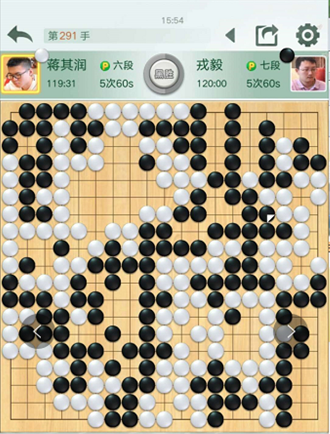 【賽場花絮】本輪比賽中,下出了“四劫循環(huán)”無勝負(fù)的棋局。此局出現(xiàn)在上海建橋?qū)W院隊對陣日照山海大象隊的主將之戰(zhàn)中,上海主將李維清與日照主將江維杰下出“四劫循環(huán)”,按規(guī)定,本局判為無勝負(fù)。對局停止時,雙方都各剩最后一次讀秒。兩人立即進(jìn)行加賽。中國圍棋隊領(lǐng)隊華學(xué)明發(fā)朋友圈稱贊棋手具有職業(yè)風(fēng)范。