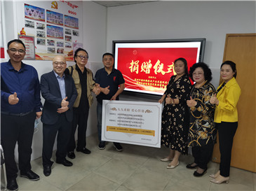 10月23日下午,深圳市簕杜鵑養(yǎng)老產業(yè)發(fā)展促進中心理事長周虹(左二)、黨支部委員黃澤惠(左三)、曹寶蘭(左四),羅湖區(qū)醫(yī)養(yǎng)融合老年病醫(yī)院院長邱傳旭(右三)和深圳中創(chuàng)智慧研究集團有限公司董事長岑象日(右一)一行來到活動現(xiàn)場,為鶴年居家養(yǎng)老服務中心送去4臺多功能輪椅、100支手杖及14400個口罩等愛心物品。