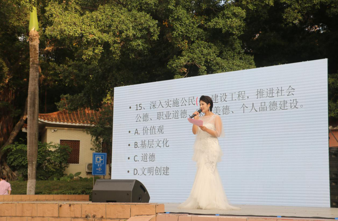演出在歡快的《永唱中國夢》歌舞中拉開了帷幕;懷舊老歌《紅歌聯(lián)唱》經(jīng)典又回味,越聽越喜歡;特色節(jié)目《李玉剛模仿秀》反串女聲,一開口驚艷全場……整場演出高潮迭起,精彩不斷,觀眾們無不拍手鼓掌,歡呼叫好。節(jié)目主持人在每個節(jié)目之間還以有獎問答的形式,宣傳黨的十九屆五中全會的內容,觀眾們踴躍參與,大家都說,這樣喜聞樂見的活動親切,接地氣,不妨多來幾場。目前,西鄉(xiāng)街道黨工委正在打造“學習強國”示范街區(qū),“今天,你學習了嗎”已成為時尚的見面問候語。(孫善文)