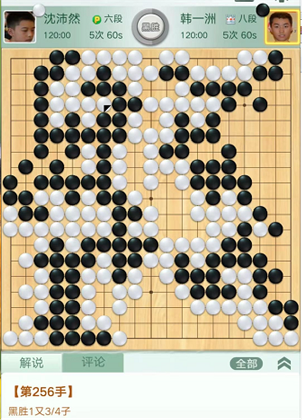 第一臺慢棋,由深圳隊的沈沛然六段執(zhí)白對陣衢州隊的韓一洲八段。開局白優(yōu)勢。中盤出于優(yōu)勢意識,一直沒有在黑棋右邊模樣里面施展手段,被黑圍起大空后局面難以掌握。中央白棋應(yīng)該對黑棋弱棋發(fā)起總攻,實戰(zhàn)貪吃黑三個殘子,導(dǎo)致局面接近。之后白棋形勢判斷有誤,招法松緩,以微弱差距落敗,沈沛然執(zhí)白1又3/4子負(fù)韓一洲。