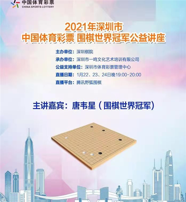 見圳客戶端?深圳新聞網訊(記者周錦春)2021年1月22、23、24日連續(xù)三天晚上,由深圳棋院主辦,深圳市一鳴文化藝術培訓有限公司承辦,深圳市體育彩票管理中心支持的“2021年深圳市中國體育彩票圍棋世界冠軍公益講座”在騰訊野狐圍棋平臺線上舉行。
