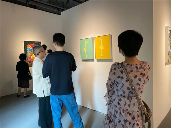 聯(lián)展現(xiàn)場(chǎng)三位作者向參觀者介紹創(chuàng)作經(jīng)歷及畫作意蘊(yùn)。