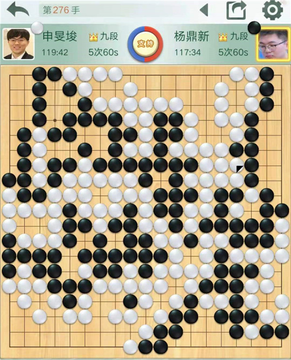 二臺主將申旻俊執(zhí)白對陣楊鼎新。右邊戰(zhàn)斗黑棋有所失誤,白棋局面大好。后來黑棋頑強(qiáng)追趕,最終還是白棋以最小優(yōu)勢1/4子獲勝。