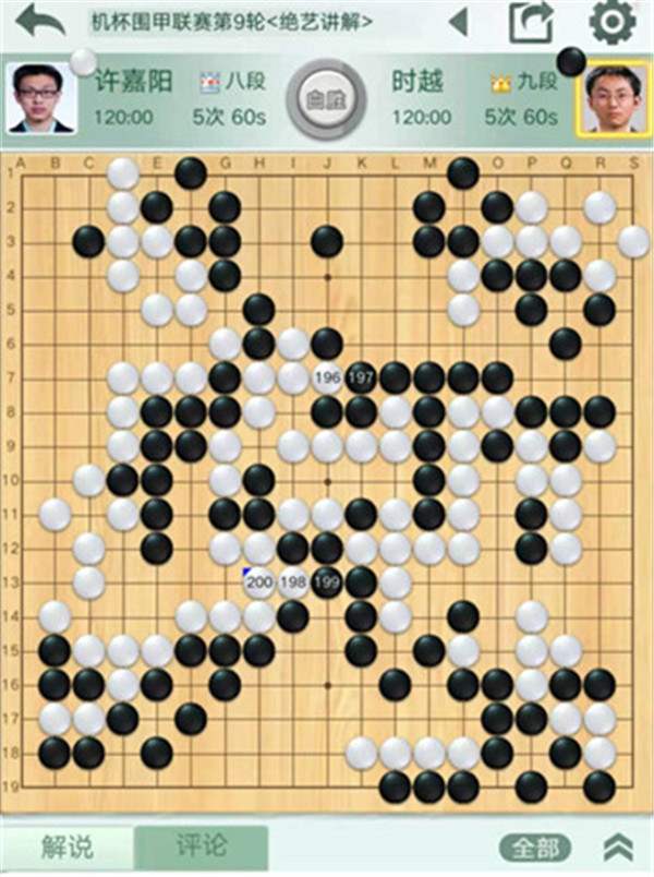 二臺申旻俊主將執(zhí)黑對陣排名第二的辜梓豪。前一百余手雙方發(fā)揮不錯,局面均勢。之后白棋在左上角試應(yīng)手時候黑棋有些慌亂,不僅沒有下出最佳手段,還給白棋留下了打劫活的余味,相當(dāng)于接近虧損一手棋。之后黑棋再無機會。