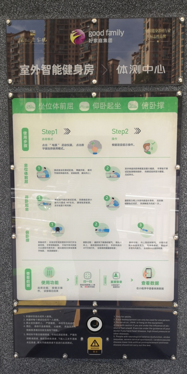 研發(fā)該套設(shè)備的深圳企業(yè)好家庭事業(yè)有限公司負(fù)責(zé)人張佳華表示,“此次被調(diào)研的室外智能健身設(shè)施已經(jīng)升級(jí)至4.0版本?;谖锫?lián)網(wǎng)、5G與大數(shù)據(jù)系統(tǒng),這套智能化設(shè)施擁有人臉識(shí)別、無(wú)感采集健身數(shù)據(jù)、手機(jī)掃碼可一鍵獲取專屬運(yùn)動(dòng)處方的功能,可為市民提供個(gè)性化、多元化、科學(xué)化的健身服務(wù)。”