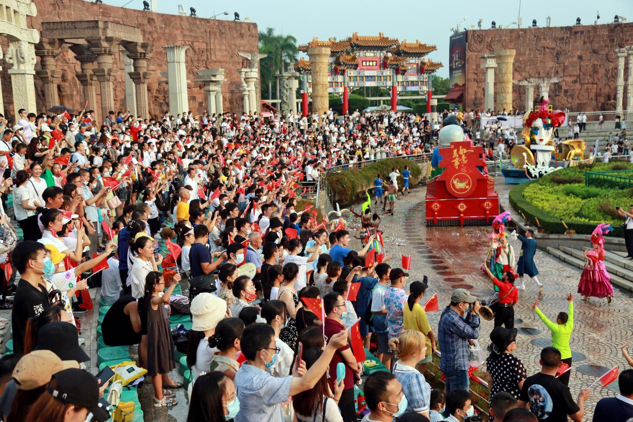 讀特客戶端·深圳新聞網(wǎng)2021年10月1日訊(記者 田志強 通訊員 陳嘉琳 黃海峰)今天,深圳世界之窗迎來第一波旅游小高峰。上午10:00整,世界之窗前廣場舉行了莊嚴的升國旗儀式,現(xiàn)場游客齊唱國歌,高亢嘹亮的歌聲響徹深南大道,激動人心。閘口處,俄羅斯歡樂家庭劇、異域風情迎賓禮以國際歡樂氛圍喜迎八方來客。