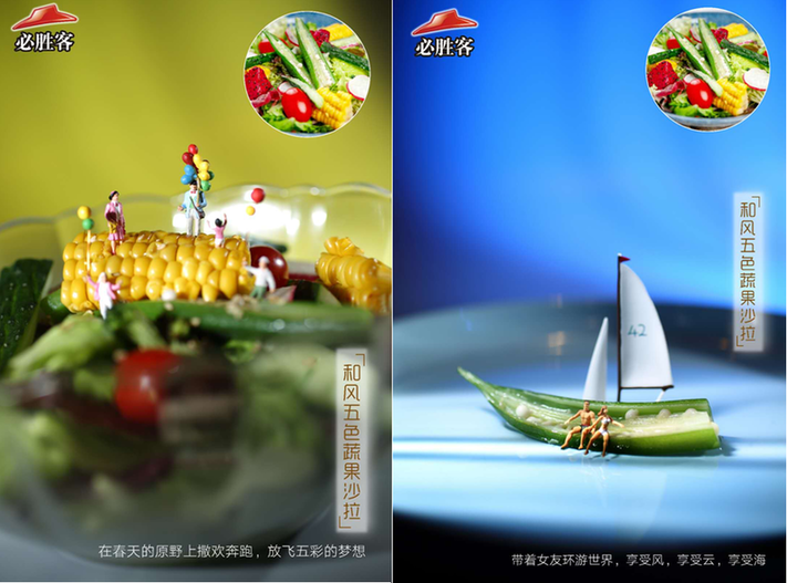 在深圳,必勝客更是腦洞大開,在最新的2018春季菜單,用迷你人偶結(jié)合旅游的場景進(jìn)行創(chuàng)意拍攝。天馬行空的想象,獨(dú)特的視角,妙趣橫生,讓人領(lǐng)略美妙“風(fēng)景”的同時(shí),不禁食指大動。