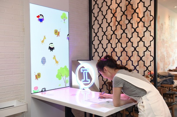 餐廳中心區(qū)域設(shè)置了一款風(fēng)靡全球的“奇妙涂鴉”互動游戲,只需用蠟筆或微信小程序涂鴉,就能親眼見證自己填色的靜態(tài)畫像活靈活現(xiàn)地走入桌面走上墻壁,人人均可當(dāng)一回“神筆馬良”,用創(chuàng)意打開無限想象,邊吃邊玩,將用餐變成一種愉悅的享受。